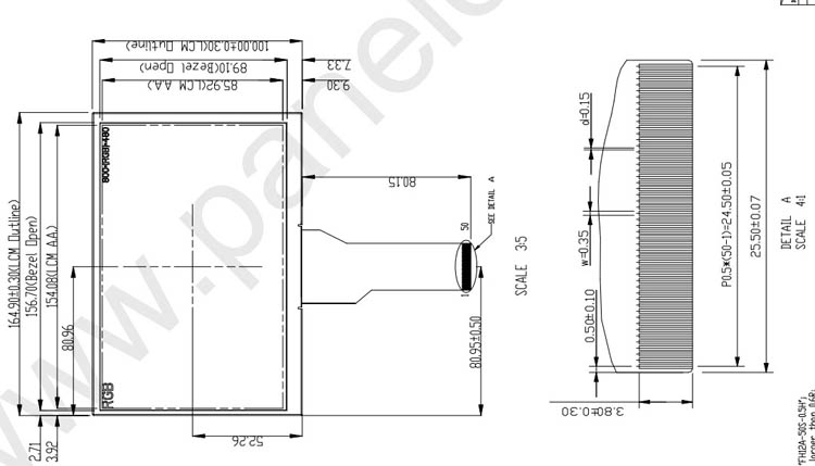| 颜色 | 262K/16.7M , 50% NTSC | 接口类型 | 50 pins Parallel RGB (1 ch, 6/8-bit) , FPC |