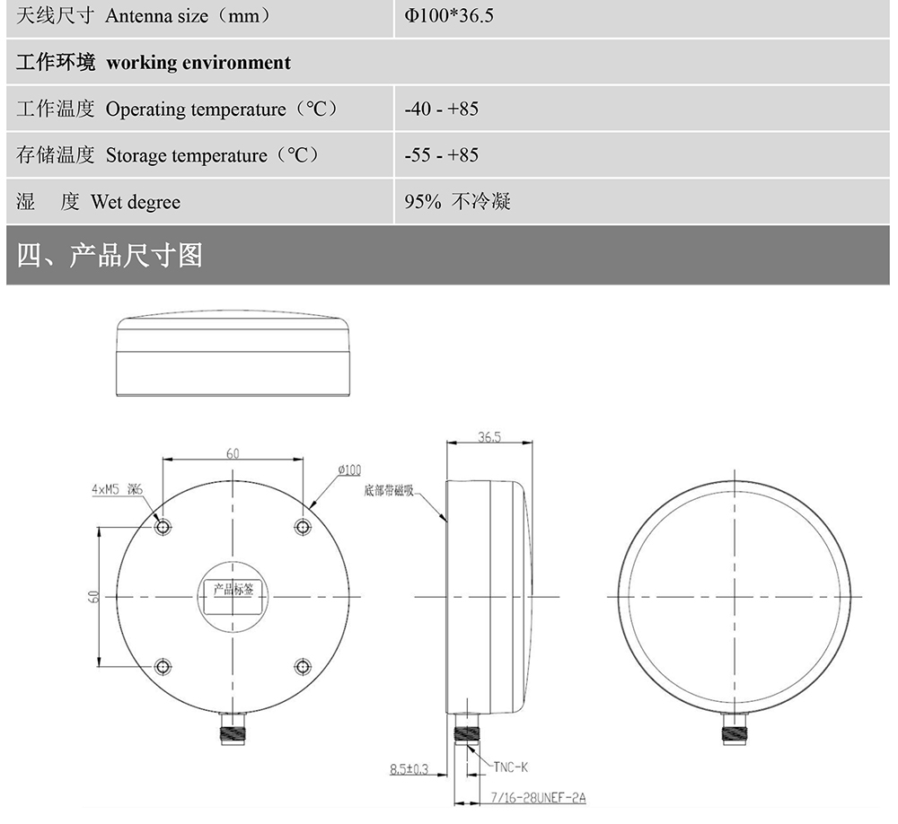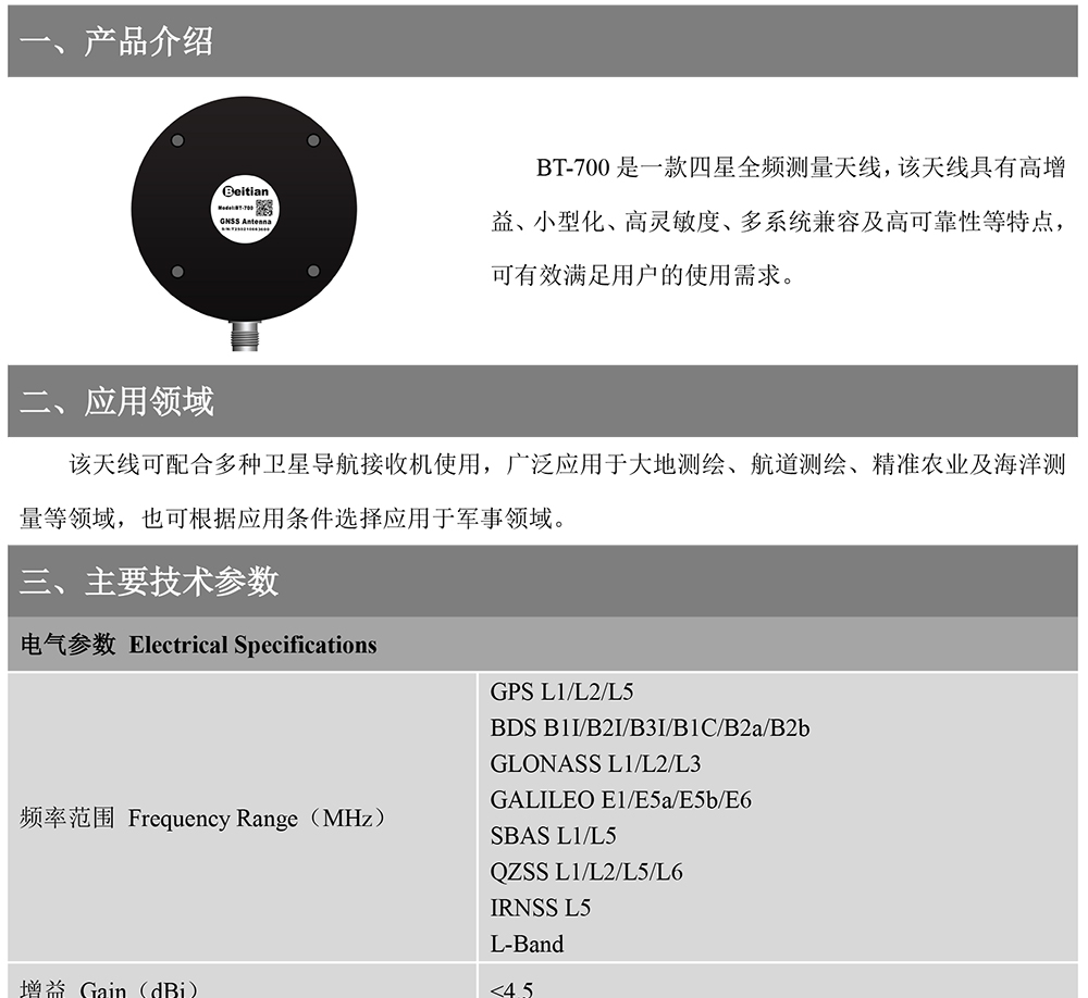 北天Beitian量测绘高清度差分天线GPS+北斗+GLONASS四星全频驾校天线BT-700