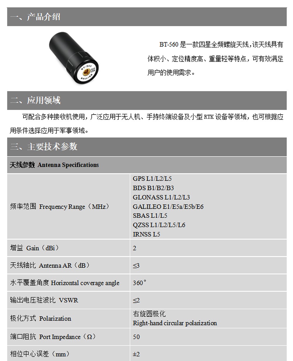 北天Beitian GPS北斗GLONASS三星七频棒状四臂螺旋差分无人机GNSS天线 BT-560