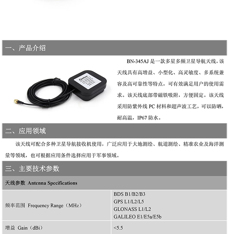 北天Beitian ZED-F9P差分GNSS北斗三星七频GPS天线BN-345AJ替代ANN-MB-00