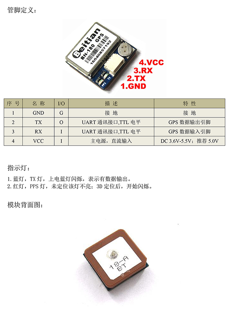 北天Beitian小尺寸北斗gps模块gps+glonass双模定位pps秒脉冲模组BN-180