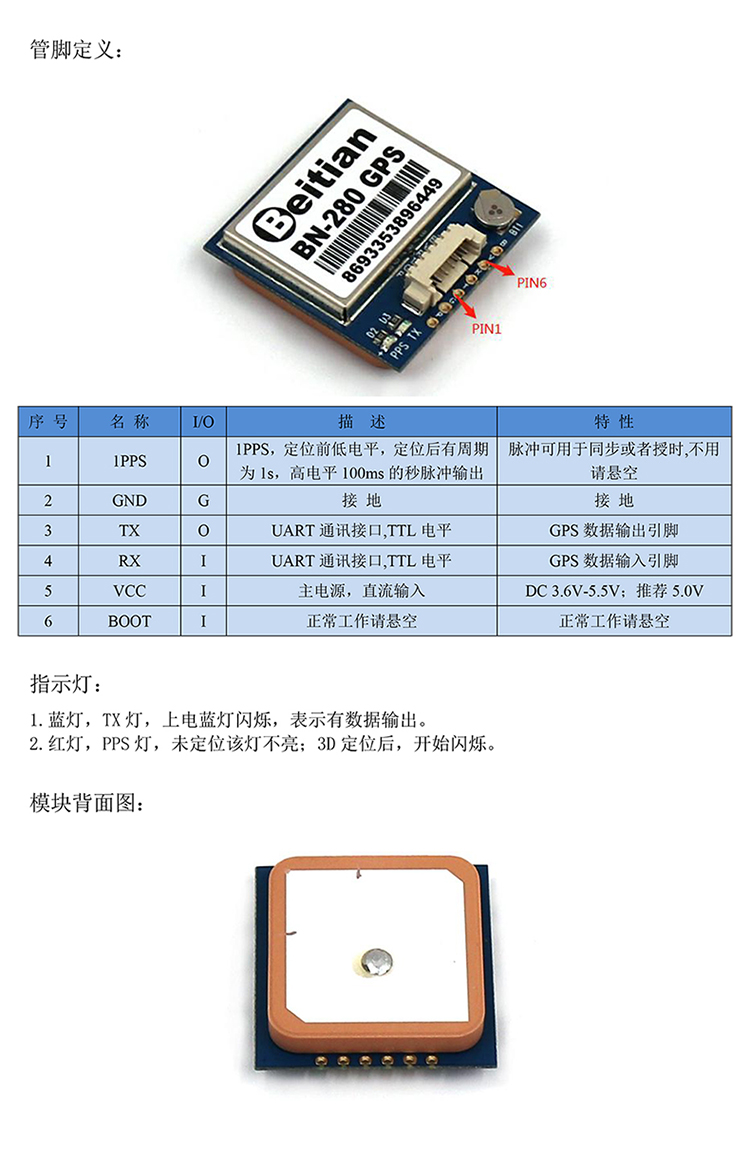 北天Beitian G-mouse军工NEO-M8N GPS北斗+GLONASS双模定位授时模块BN-280
