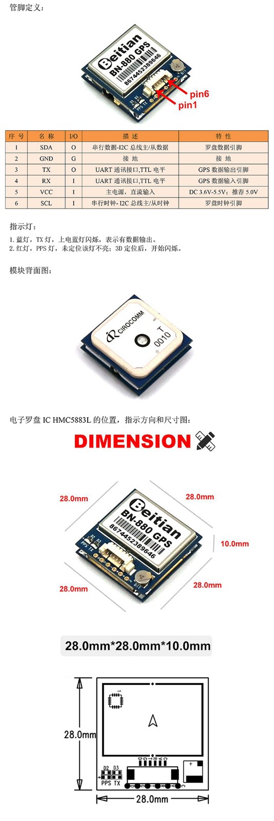 北天Beitian飞控PIX4GLONASS GPS模块APM HMC5883磁罗盘地磁NEO-M8N BN-880