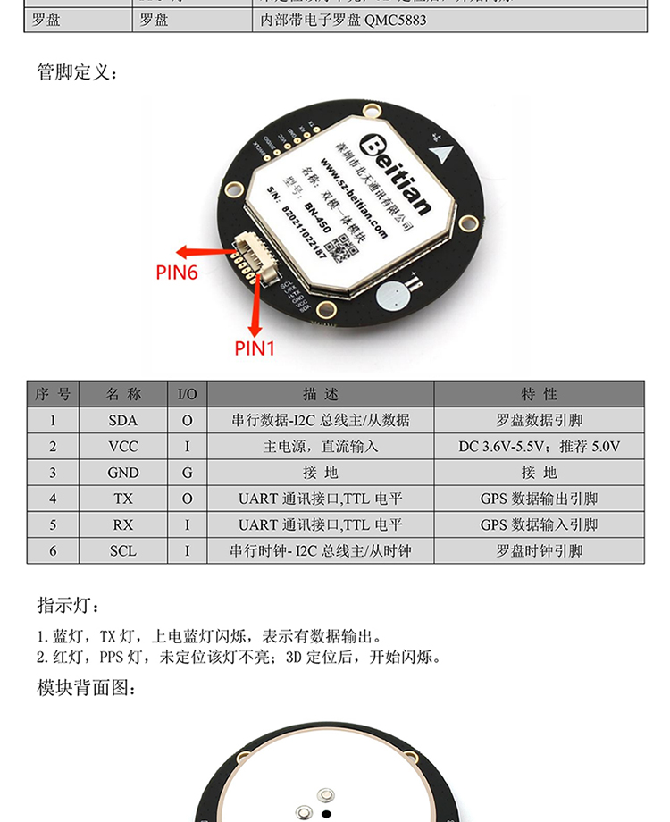 北天Beitian北斗GPS天线一体飞控无人机pixhawkQMC5883罗盘gnss模块BN-450