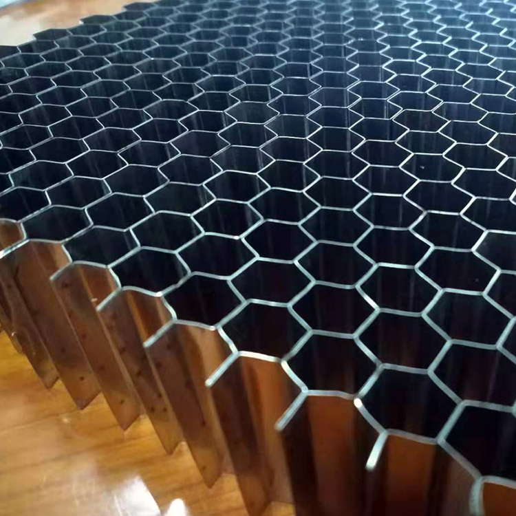 蜂窝夹芯或蜂窝芯材。是蜂窝结构材料夹于两块蒙皮之间的蜂窝芯格子有六六角形的蜂窝芯稳定性角形、菱形、矩形和正弦曲线形等。正高,制造简便应用最为普遍。其结构描述参数主要是;边长、壁厚、蜂窝高度及齐量蜂窝结构芯子具有非常高的强度和刚性,广泛用于现代造船、航空,航天工业方面一、铝蜂窝芯是由多层铝箔粘合,叠压,然后拉伸展开成规则的正六边形蜂窝芯子。铝蜂窝芯具有尖锐、清晰的孔壁,没有毛刺,适合高质量的芯对面材的粘接及其它用途。蜂窝板芯层为六边形铝蜂窝结构,相互牵制的密集蜂窝有如许多小工字梁,可分散承担来自面板方向的压力,使板受力均匀,保证了面板在较大面积时仍能保持很高的平整度。另外,空心蜂窝还能大大减弱板体的热膨胀性。铝蜂窝芯材的供货形式分为铝蜂窝叠块、铝蜂窝芯条及拉伸后的铝蜂窝芯块。