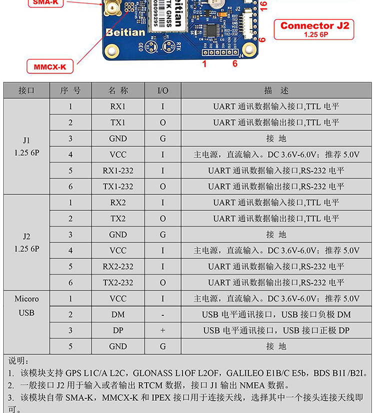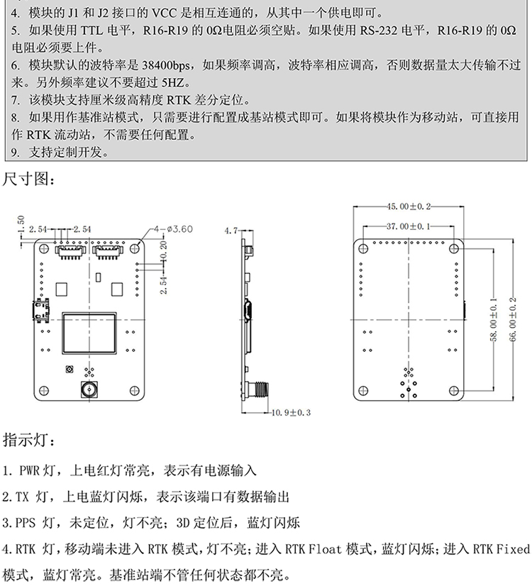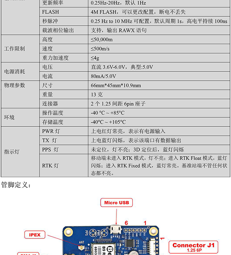 北天ZED-F9P航测植保无人机旋翼双频差分厘米级RTK含天线BT-F9PK1