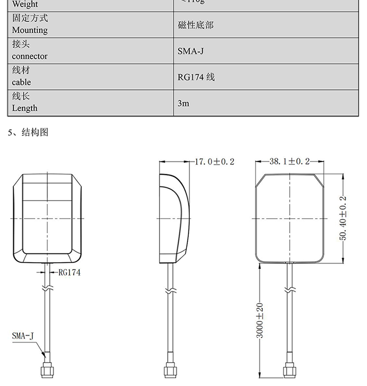 北天SMA直头外置GLONASS+GPS 二合一双模定位有源天线 BN-143AJ