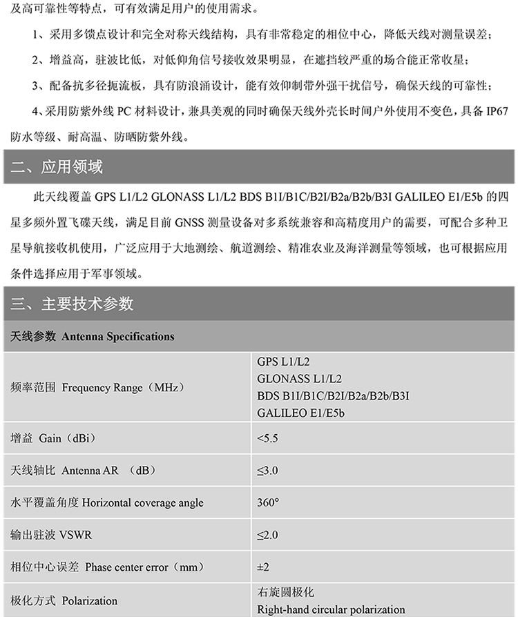 北天监测农业高精度差分RTK四星多频GNSS北斗飞碟GPS天线BT-300D