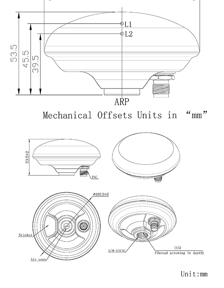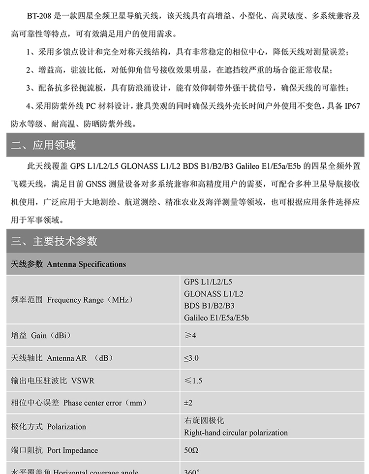 Beitian摊铺机高精度rtk差分GPS北斗四星全频GNSS天线碟型BT-208