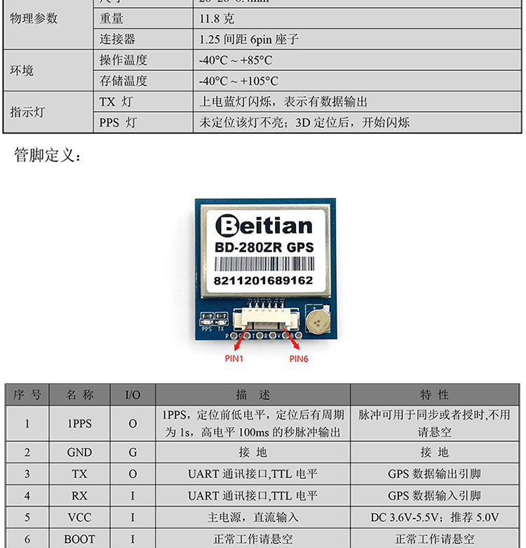 Beitian北斗GPS模块GNSS天线一体模组AT6558R定位模块 BD-280ZR