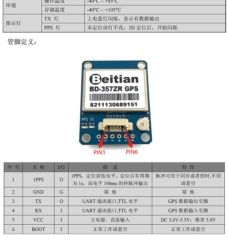 Beitian TTL 北斗GPS模块GNSS天线一体中科微AT6558R定位BD-357ZR