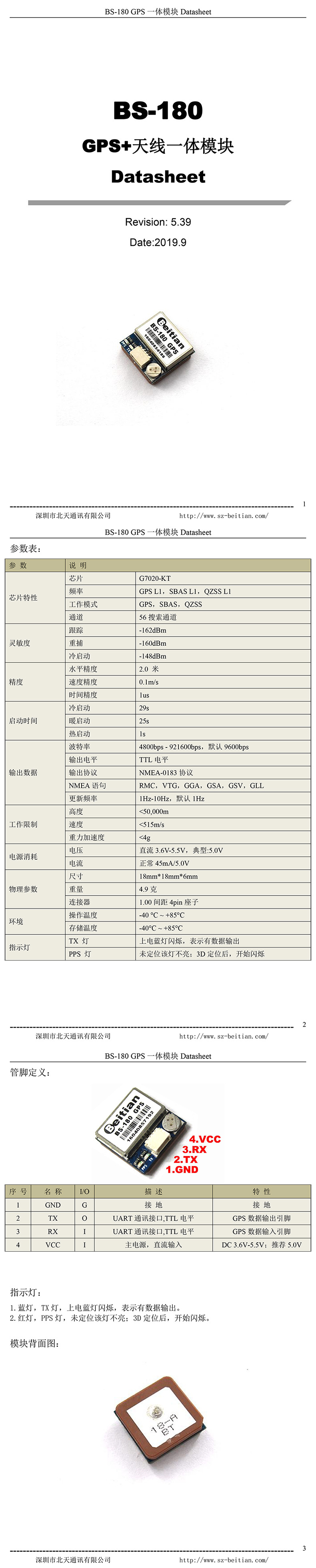 注明:该BS-180一体模块是尺寸极小的单模GPS。性能一流。