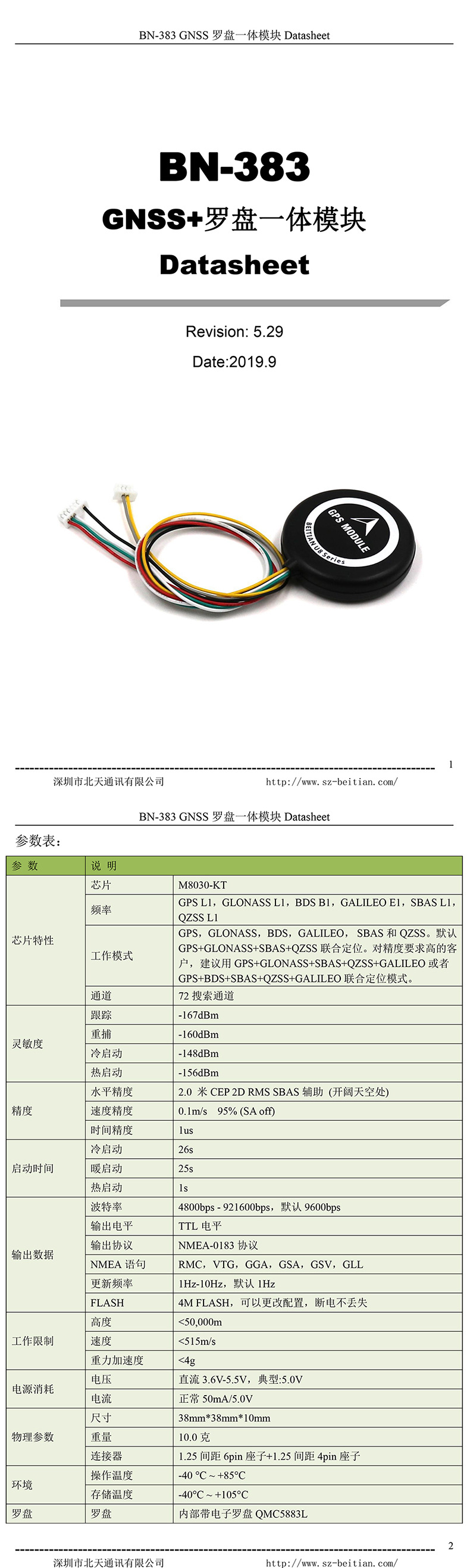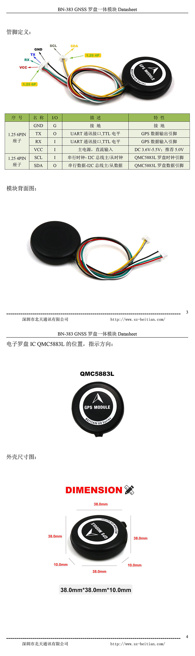 APM/PIX用飞控无人机GPS带罗盘 NEO-M8N 定点返航北斗模块 BN-383