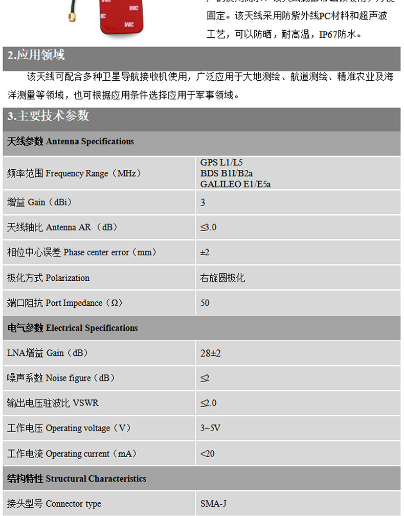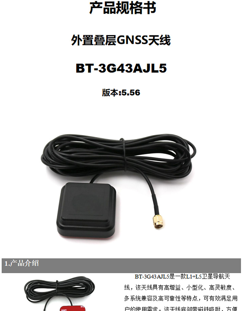L1/L5双频GNSS工程测量高精度天线有源陶瓷GPS北斗 BT-3G43AJL5