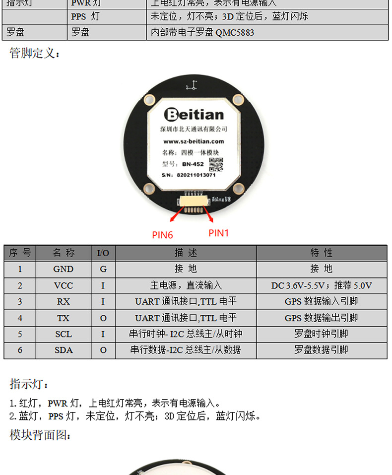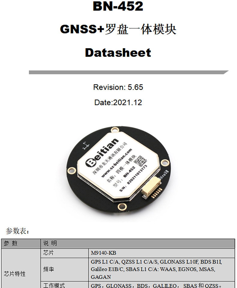 北天NEO-M9N亚米级GNSS 4星QMC5883天线北斗GPS模块模组BN-452