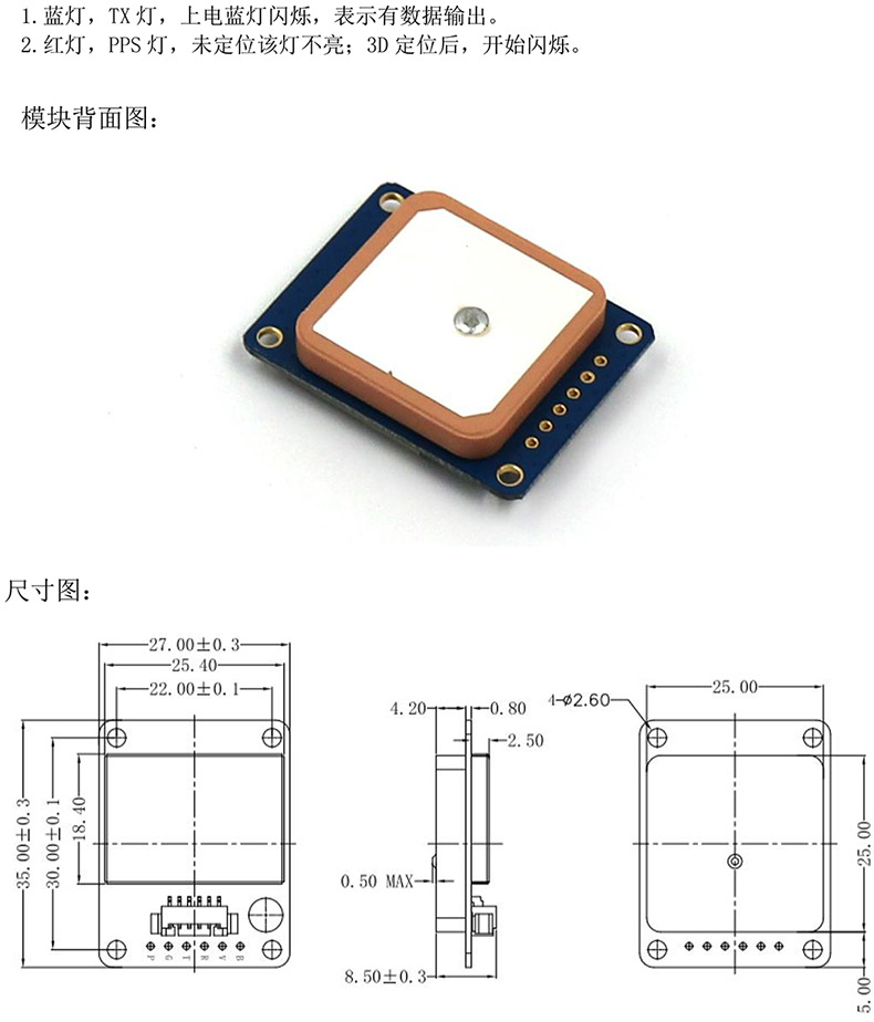 1.PPS,定位后有秒脉冲输出,脉冲周期1s,高电平持续100ms,用于系统同步。