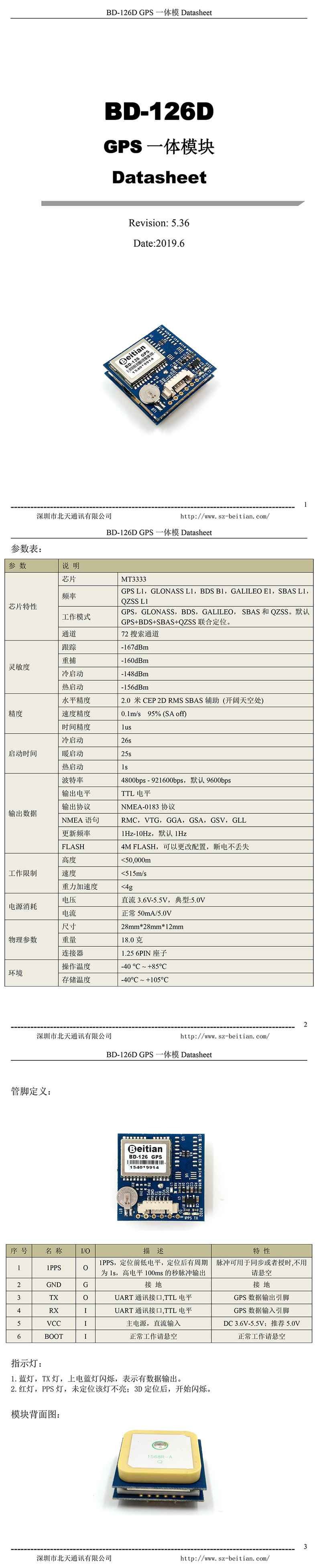 北天GPS模块北斗MT3333芯片高增益有源内置天线一体模块 BD-126D
