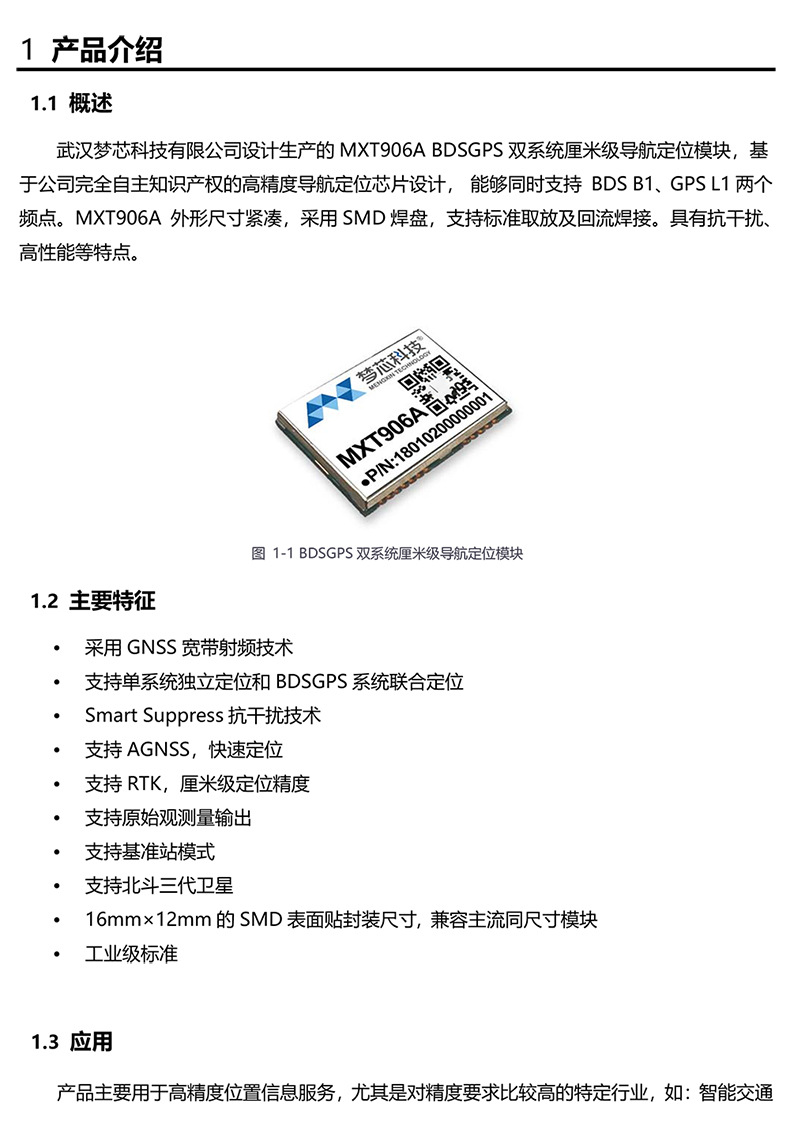 梦芯MXT906A单频GNSS RTK双系统北斗厘米级f9p高精度测量GPS模块