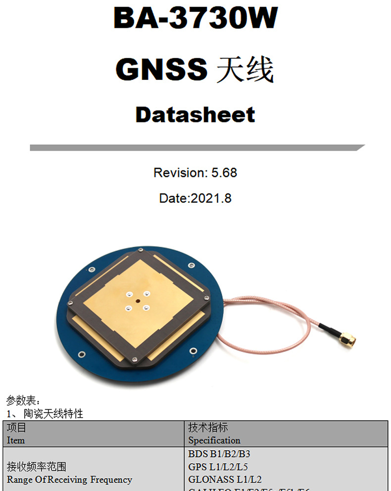 RTK高精度北斗海洋测绘GNSS四星全频内置GPS天线BA-3730W