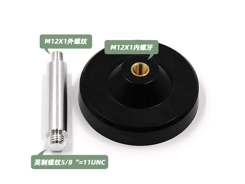 底座尺寸:Φ107mm×3.5mm含支柱底座尺寸:Φ107mm×123mm螺纹尺寸:5/8“-11UNC重量:1.0公斤金属底座底部有一个巨大的永久磁铁,可以牢固地附着在铁物体上。固定非常牢固。