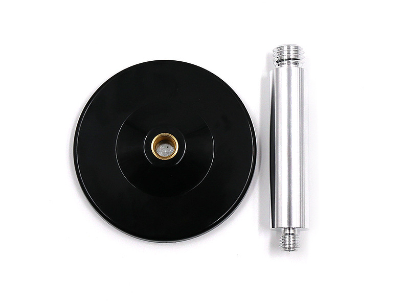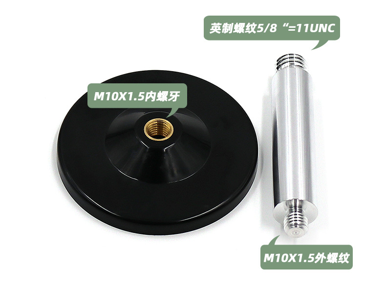 底座尺寸:Φ90mm×3.5mm含支柱底座尺寸:Φ90mm×123mm螺纹尺寸:5/8“-11UNC重量:0.85公斤金属底座底部有一个巨大的永久磁铁,可以牢固地附着在铁物体上。固定非常牢固。