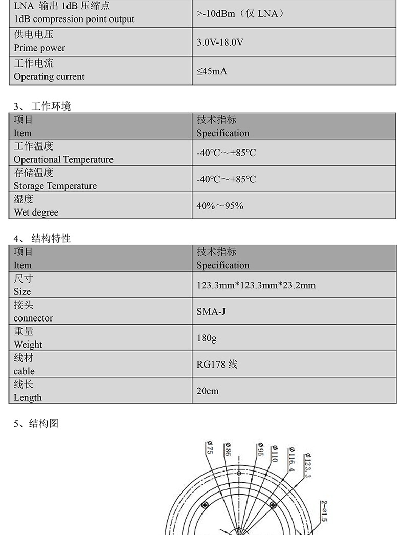 GNSS天线GPS北斗航天轮船测量四星全频高精度内置天线BA-4830
