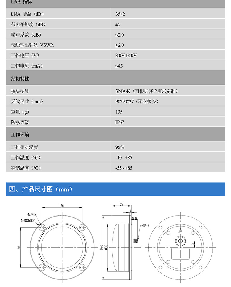 北天Beitian高增益RTK GLONASS+北斗+GPS测量航空天线 BT-3707A