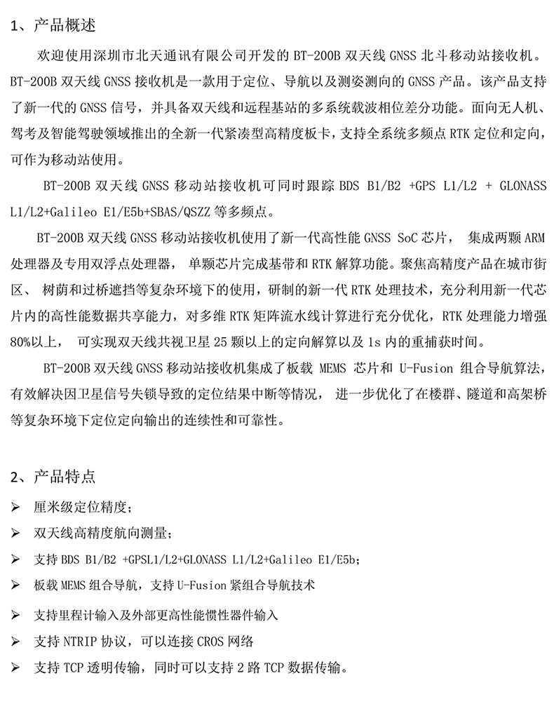 北天监测精密农业GNSS北斗双天线高精度RTK厘米级接收机BT-200B