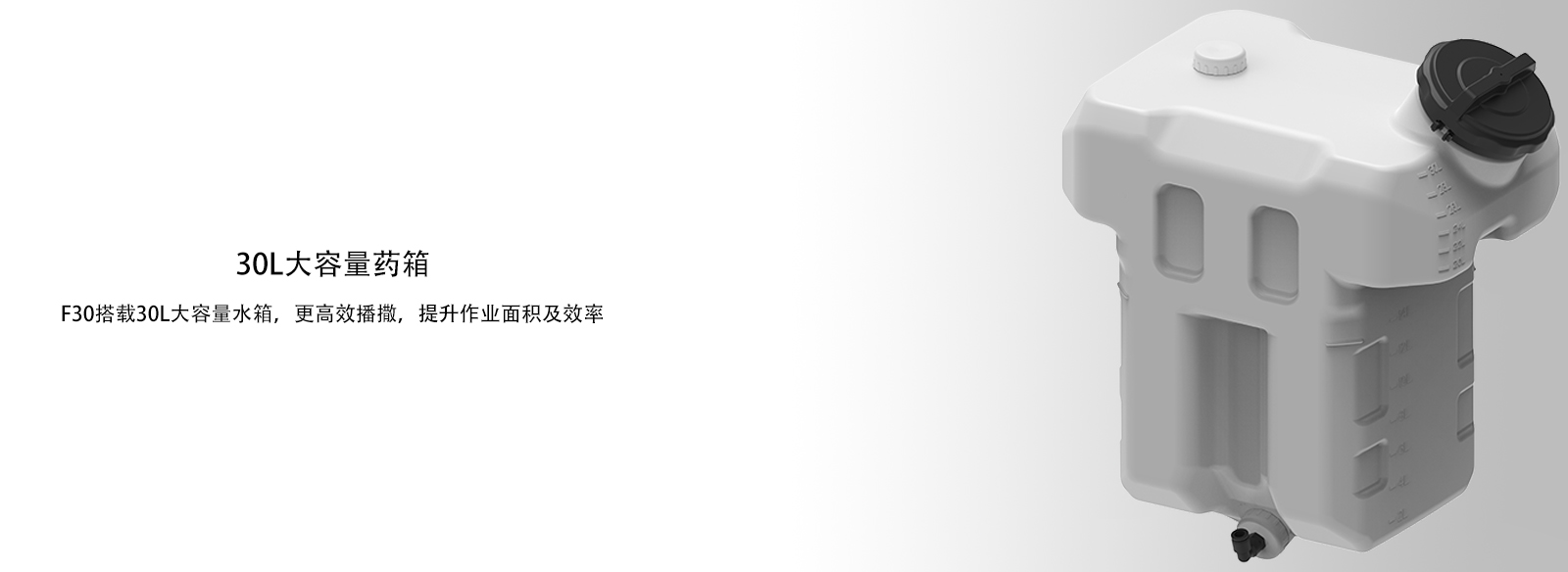 F30 将植保无人飞机结构的最大载重提升至 40 公斤,提供更高的装机平台;快速折叠的“变形”机身,精简的模块化设计装机省时省力;搭配相关控制系统优化农业解决方案,用机成本更低