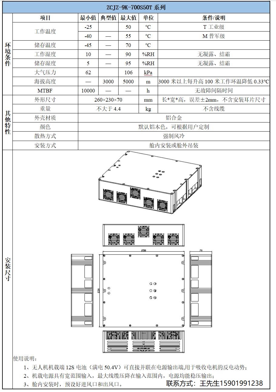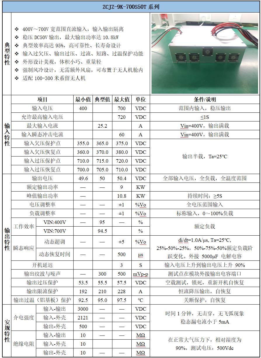 9KW系留无人机的机载电源,瞬态10.8KW
