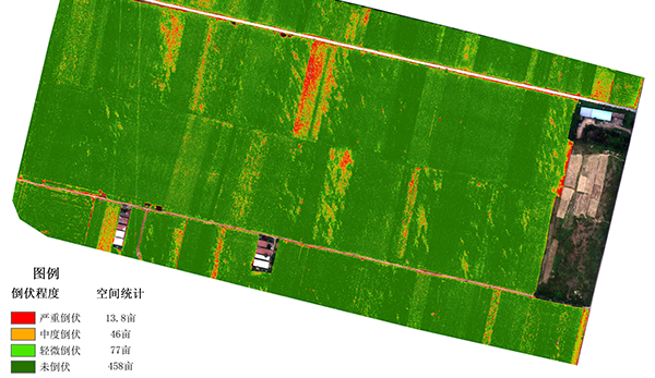 根据植被的冠层光谱和叶面纹理差异,构建作物倒伏评估模型,结合地面采样点统计数据,定量描述作物的倒伏程度和不同倒伏程度的空间分布,为灾害评估、作物估产等提供数据支持。