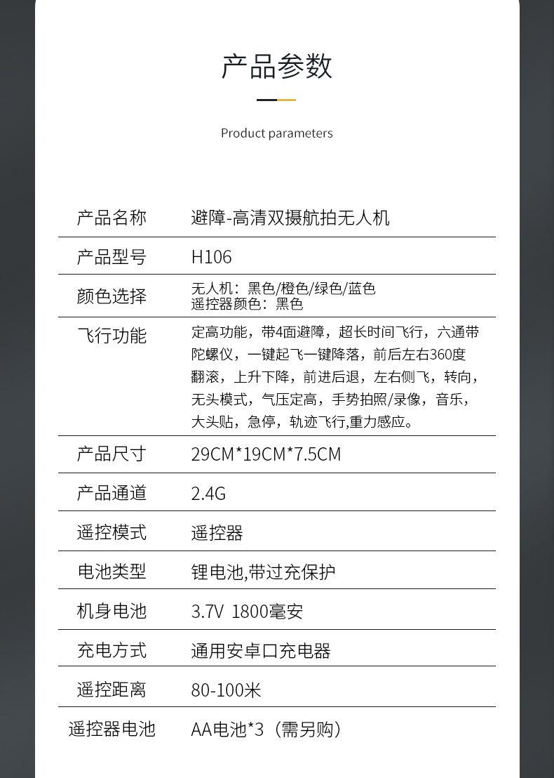 JJRC H106避障无人机航拍4K高清专业飞行器航模儿童遥控飞机直升机玩具男孩