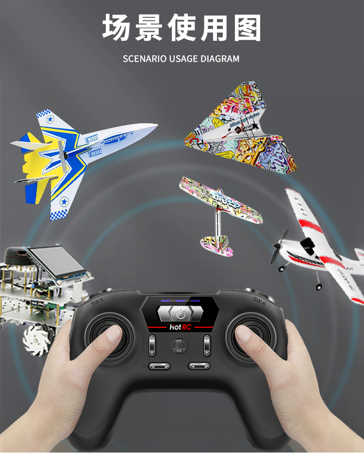 HOTRC 2.4G科教遥控器5通道混控遥控器pwm接收机DIYsu27三角翼飞