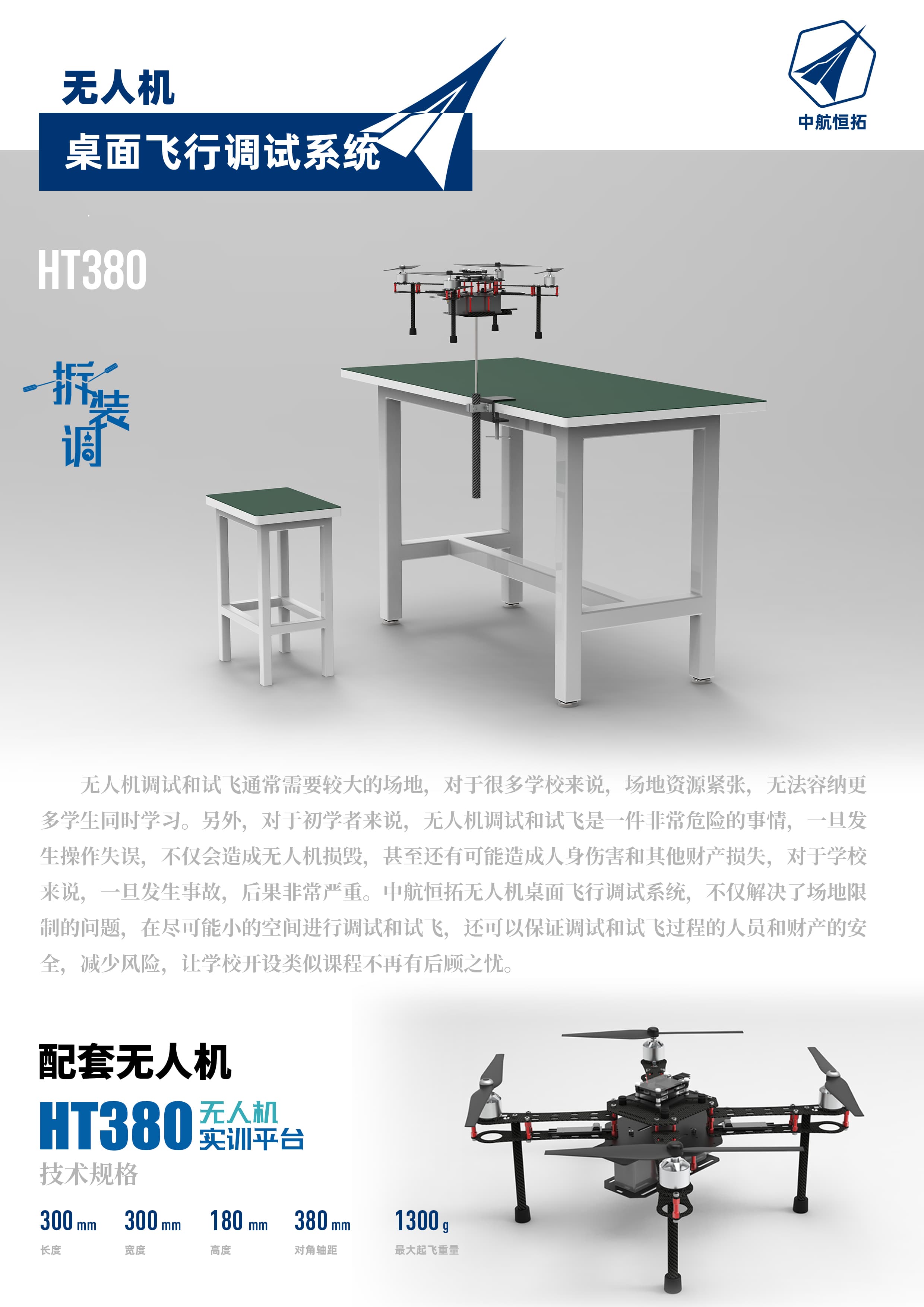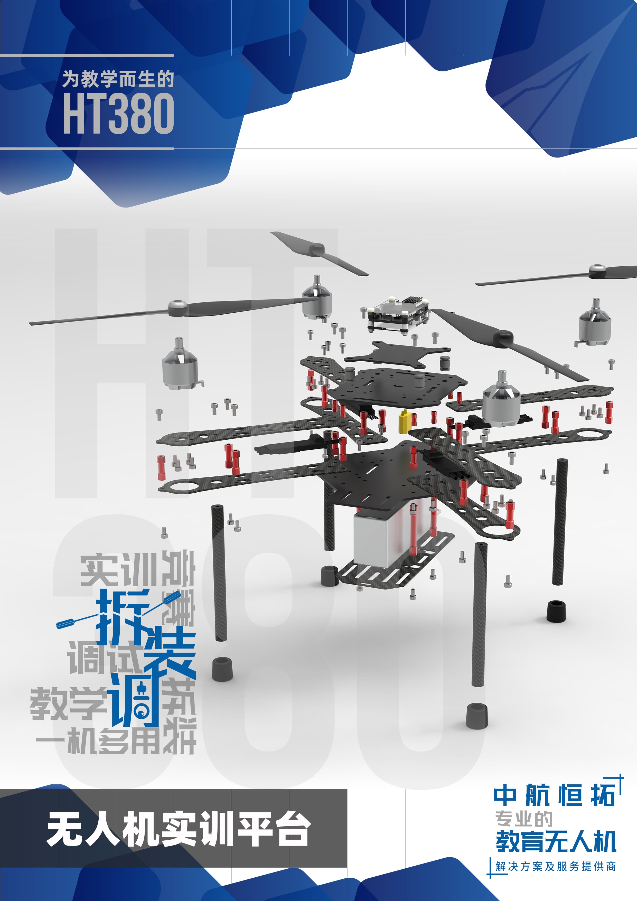 HT380拆装调无人机产品特性: