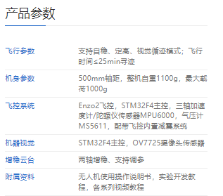 HT500XJ智能视觉寻迹无人机开发平台,采用中航恒拓自主研发的基于STM32F4的Enzo2代飞控系统,采用500mm对角轴距四旋翼结构,通过搭载的双轴图像增稳云台、机器视觉模块、光流测速传感器以及超声波测距传感器,可以获取地面上的道路标识和高度信息,识别并跟踪地面上的黑线轨道。一键起飞、精准寻迹、悬停、转弯、精准降落全程均可自主完成。同时支持用户手动遥控操作飞行,可拓展完成飞行避障、目标物抓取与投掷、航拍等任务。各院校无人机实验室、无人机大赛首选产品。