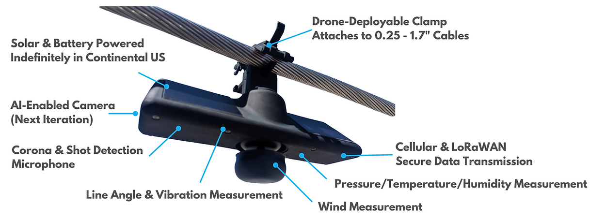 The DLR Sensor provides wireless data on line health and weather. This data can be used for computation of line ampacity and by software providers to predict future ampacity. Our prototype provides: