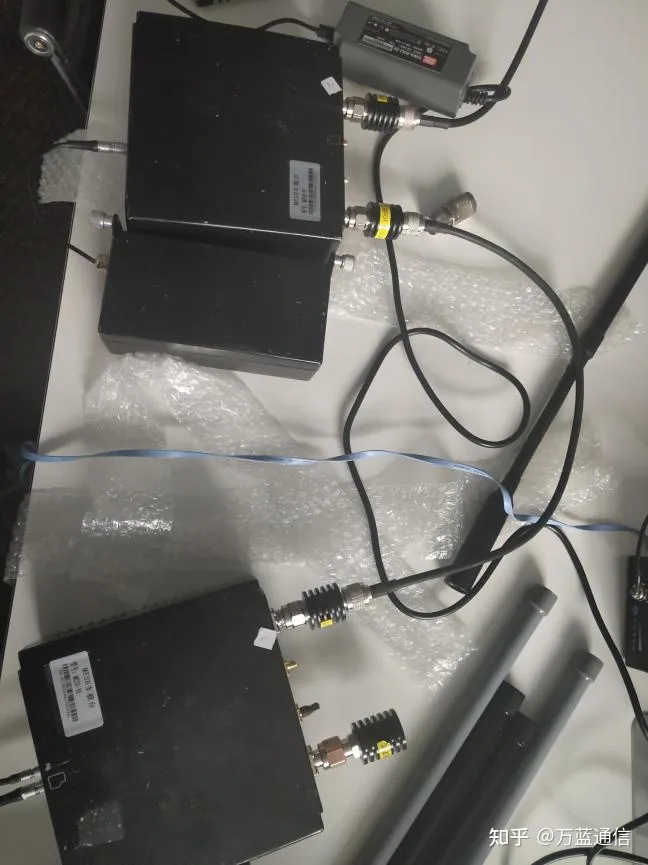 将每台设备天线接口分别接一根全向天线,另一接口分别接一个衰减器堵头,把每跳设备设置成合适的发射功率,使用软件链路剔除功能通过指定路由将链路形成链状网拓扑,查看链路质量,调整发射功率把链路调试到最优状态,进行灌包测试。