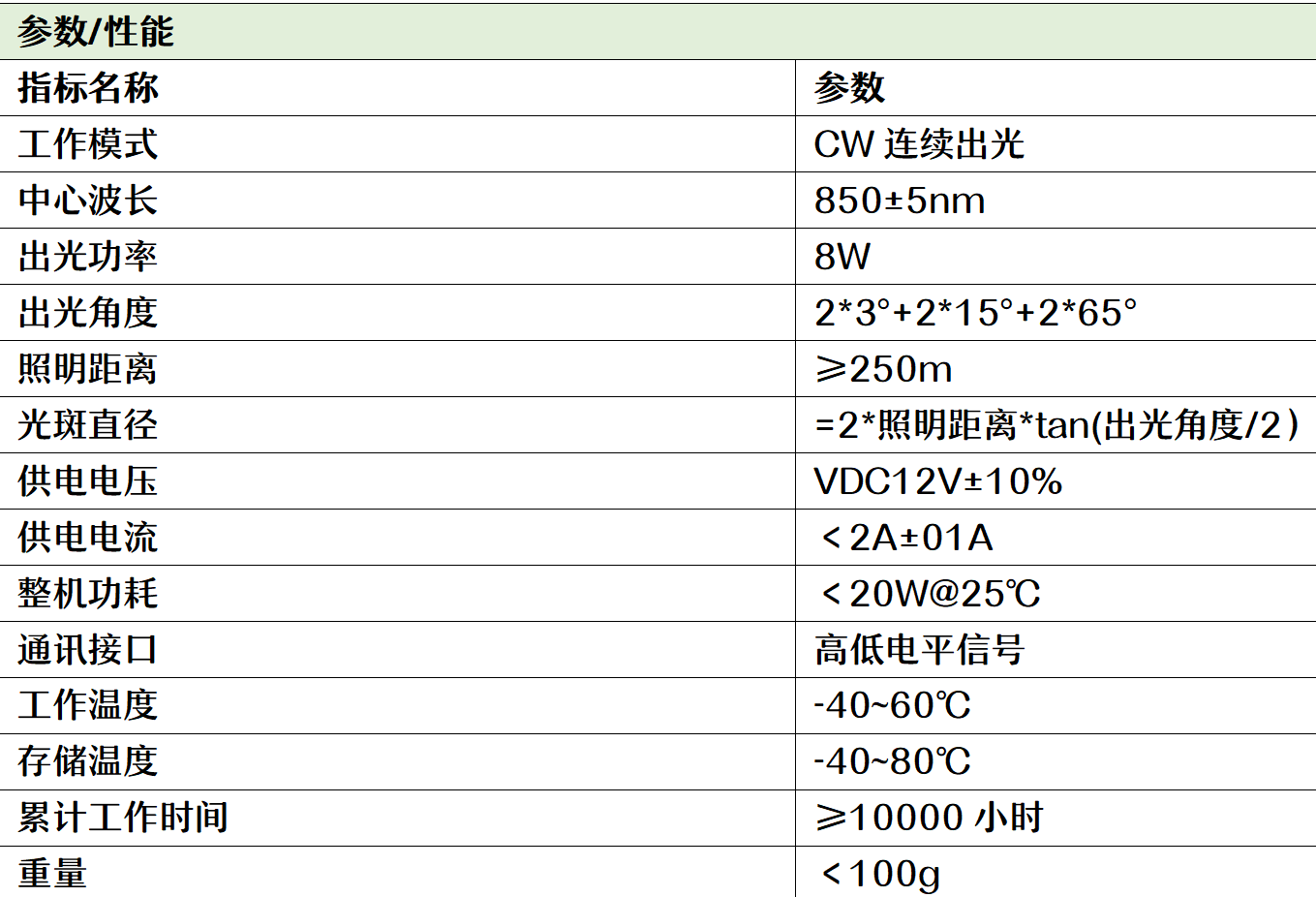 补光光距离1-500米,各种不同角度组合。