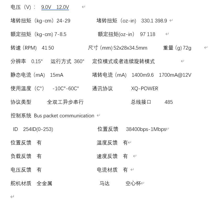 XQ-POWER XQ-RS430 串口机器人用30KG舵机