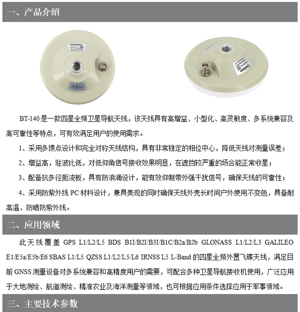北天蘑菇头GNSS测量天线高精度RTK飞碟北斗GPS四星全频驾考BT-140
