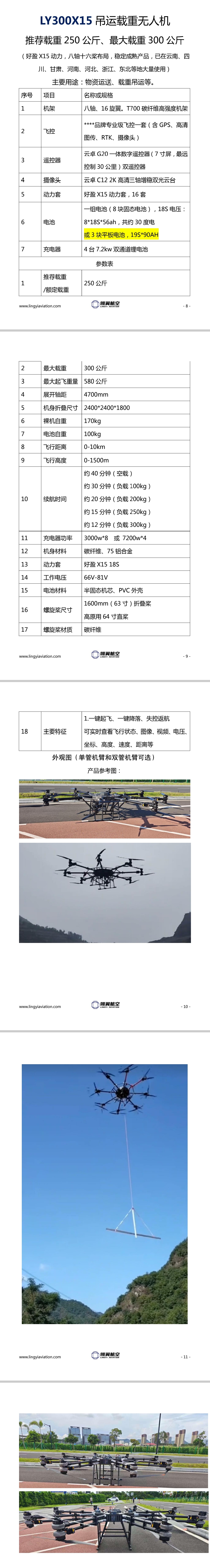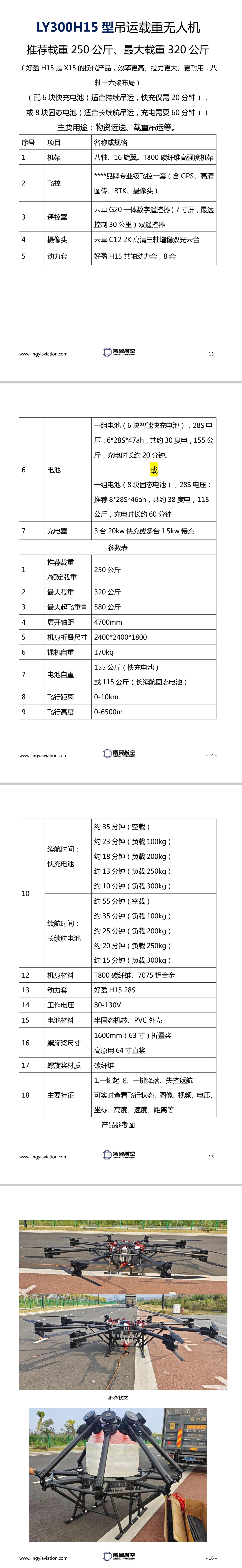 翎翼航空LY300-H15/X15型250-320公斤载重无人机(好盈H15/X15动力)