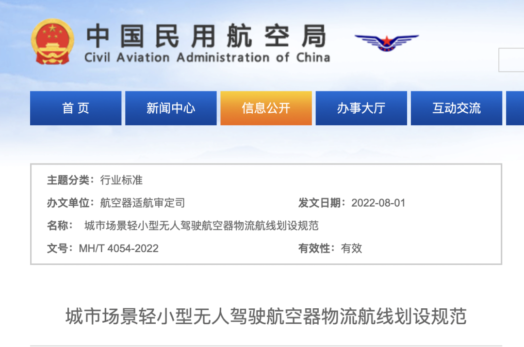行业首个城市无人机物流航线标准正式发布并于8月1日起施行
